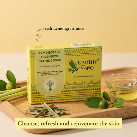 Lemongrass Freshness Bathing Soap – Infused with lemongrass essential oil, it uplifts the mood and gently cleanses.